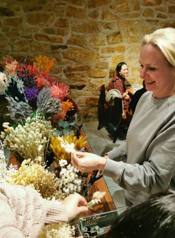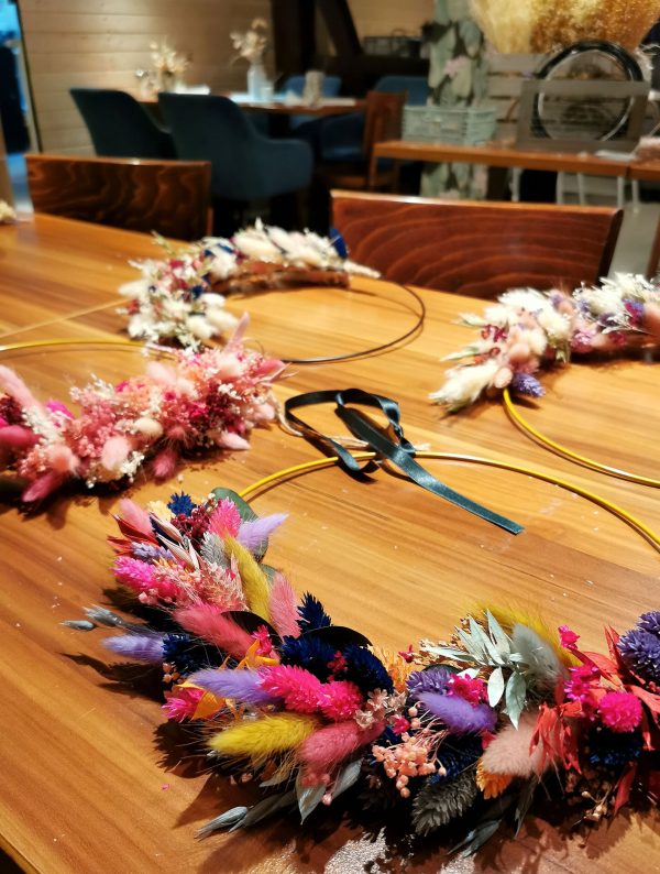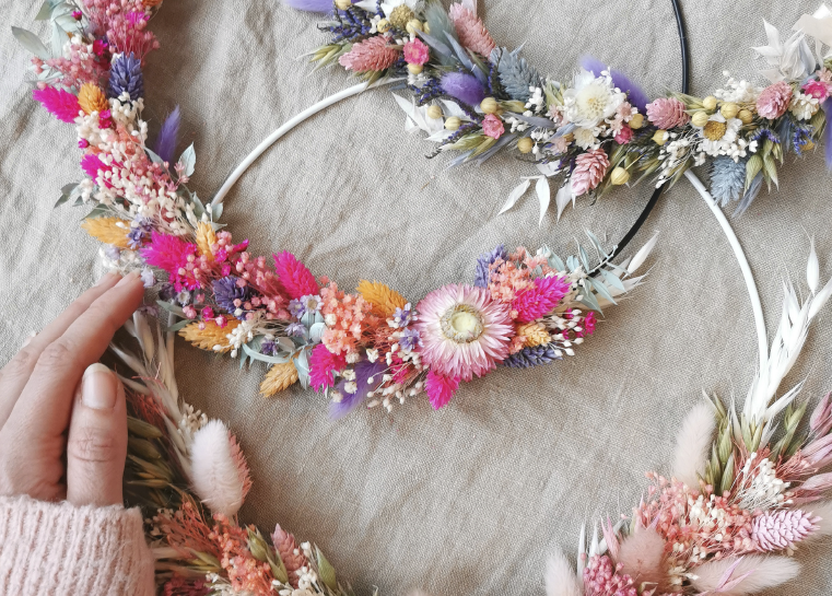 Eine unbeschwerte, kreative Zeit garantiert und ein Blumenkranz, über den du dich auch noch lange nach dem Workshop freuen wirst. Denn wir wickeln gemeinsam deinen ganz individuelle Blumenkranz aus hochwertigen und langlebigen Trockenblumen. Ob schlicht, verspielt, Boho, natürlich, in Pastell oder knalligen Farben… Eine riesige Blumenauswahl und Tipps & Tricks rund ums Gestalten eines Flower-Loops warten auf dich. Du hast außerdem die freie Wahl zwischen einem weißen, schwarzen oder goldenen Metallring.