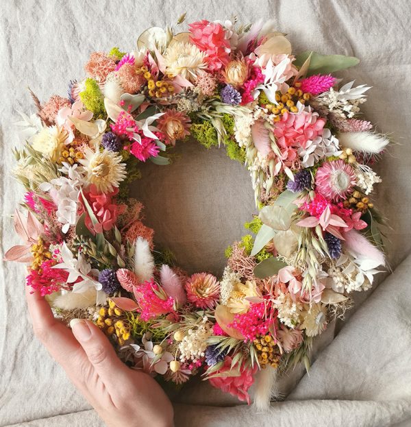 Wir gestalten einen Moos-Kranz mit Trockenblumen