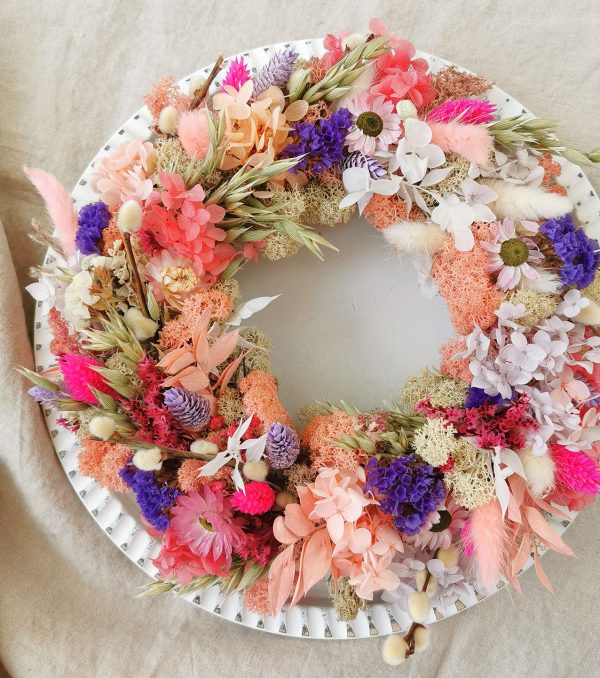 Eine unbeschwerte, kreative Zeit garantiert und ein Moos-Blumenkranz der seines gleichen sucht. Hol dir mit diesem Kranz richtig gute Laune in deine 4 Wände!